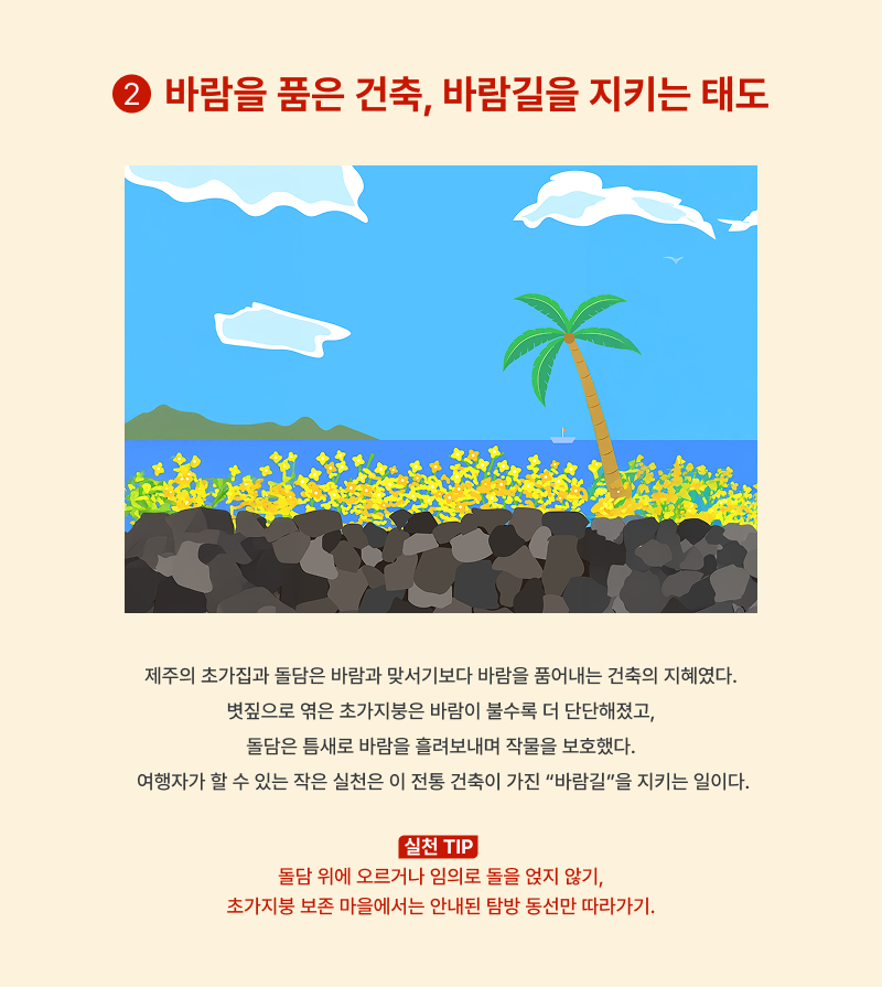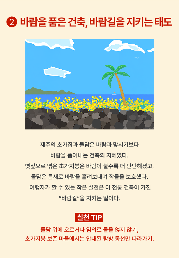 제주의 바람은 불편한 장애물이 아니라 환경과 공존하는 방법을 알려주는 스승이다.
