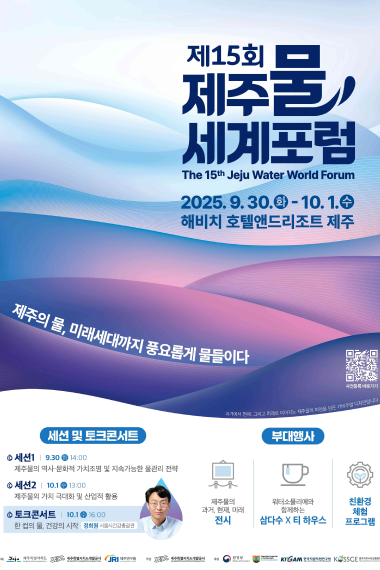 제주특별자치도개발공사는 지난 9월 30일부터 10월 1일까지 해비치 호텔앤드리조트 제주에서 ‘제15회 제주물 세계포럼’을 개최했다. ‘제주의 물, 미래세대까지 풍요롭게 물들이다’를 주제로 열린 이번 포럼은 제주물의 역사·문화적 가치를 조명하고 지속가능한 물 관리 전략과 산업적 활용 방안을 논의하는 국제 지식 교류의 장으로 진행됐다. 국내외 지하수 및 수자원 전문가들이 참여해 제주 물의 공공성과 산업적 가능성을 다각도로 다뤘으며, 제주특별자치도·제주개발공사·제주연구원이 공동 주최하고 환경부와 국제수리지질학회(IAH) 등 관련 기관이 후원했다.