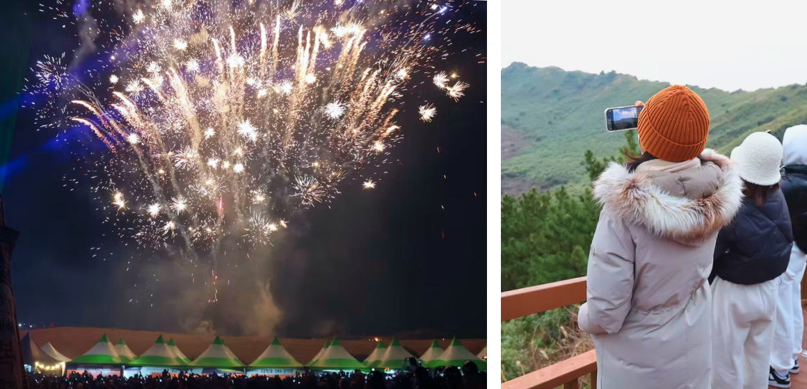 성산일출봉의 붉은 빛이 바다를 물들일 때, 수천 명의 사람들이 동시에 소원을 빌고, 불꽃이 터지며 새로운 해의 이름을 부른다.