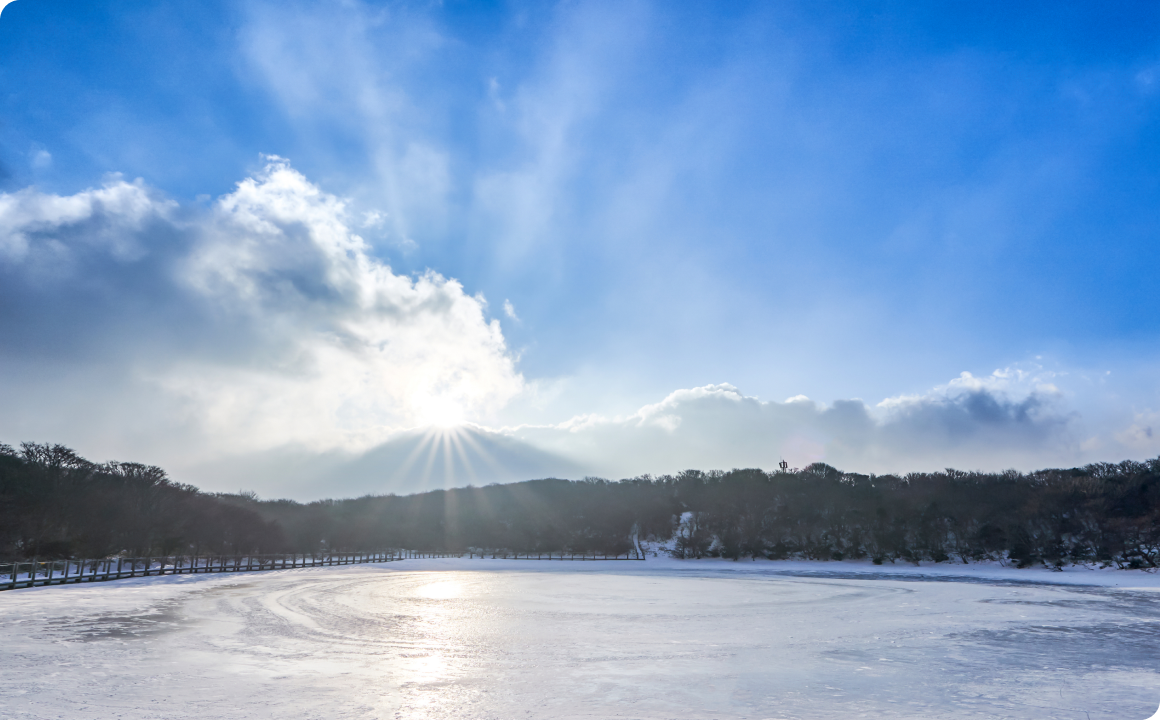 새하얗게 얼어붙은 호수 위로 하늘이 비치는 모습은 자연이 빚어낸 거대한 거울과도 같다.