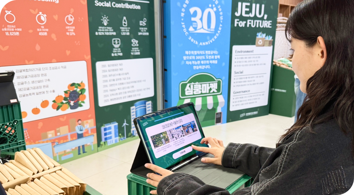 이번 팝업스토어는 '제주의 과거와 미래를 담아가는 심쿵마켓'이라는 콘셉트로 제주개발공사의 30년 성과와 함께 제주도의 지속가능한 미래 비전을 도민들과 공유하는 특별한 공간으로 운영되었다.